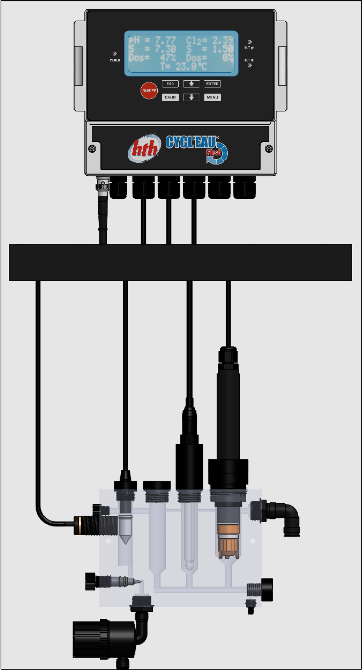 Adopter un système de régulation ampérométrique CYCL’EAU®, c’est s’assurer d’un contrôle automatique et efficace de l’eau de votre bassin. Le système de régulation analyse et réajuste automatiquement les teneurs en chlore et en pH du bassin afin de garantir sécurité et confort aux baigneurs.