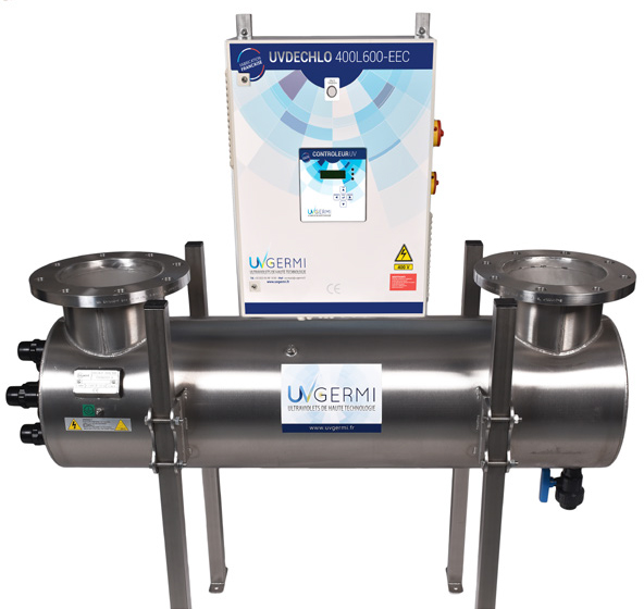 le taux de trichlorures d’azote dans l’air de 50%. Ils sont fabriqués en inox 316L ou en PEHD et ils intègrent des lampes UV basse pression d’une durée de vie de 16 000 heures (2 ans de fonctionnement).
